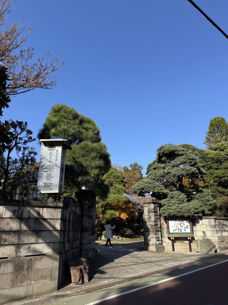 交通量の多い環七、川越街道ですが、一本入ると静かな道になり、しばらく歩くと安養院に到着です。
