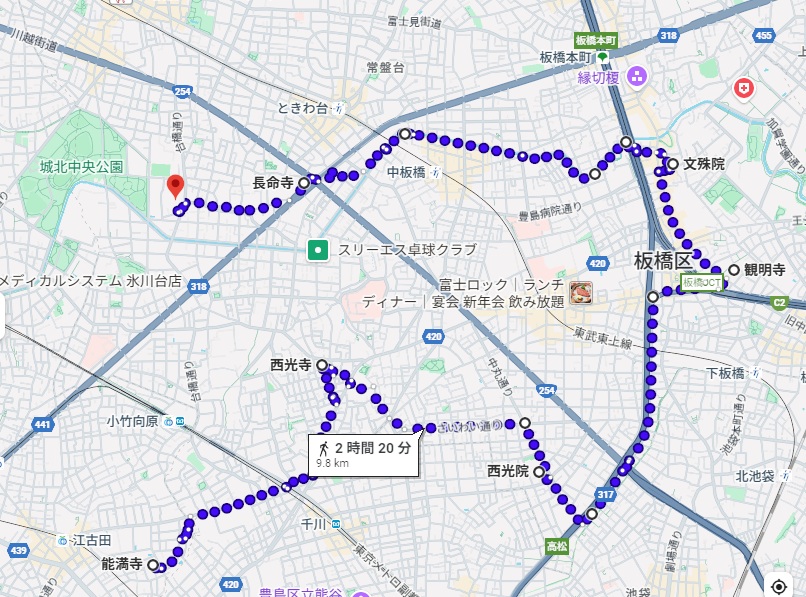 そして、めぐりながらうっすら気づいてはいたのですが、今回の板橋七福神、リハビタブルの訪問エリアにあるのはスタートの能満寺だけで、それ以降は板橋区の中でも訪問エリア外でした。。。