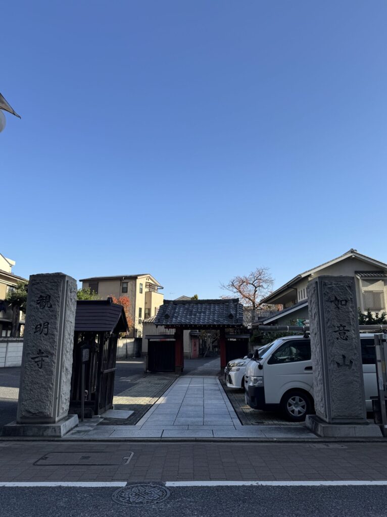 板橋区役所まで来たら旧中山道に入るとほどなく道沿いに観明寺があります。