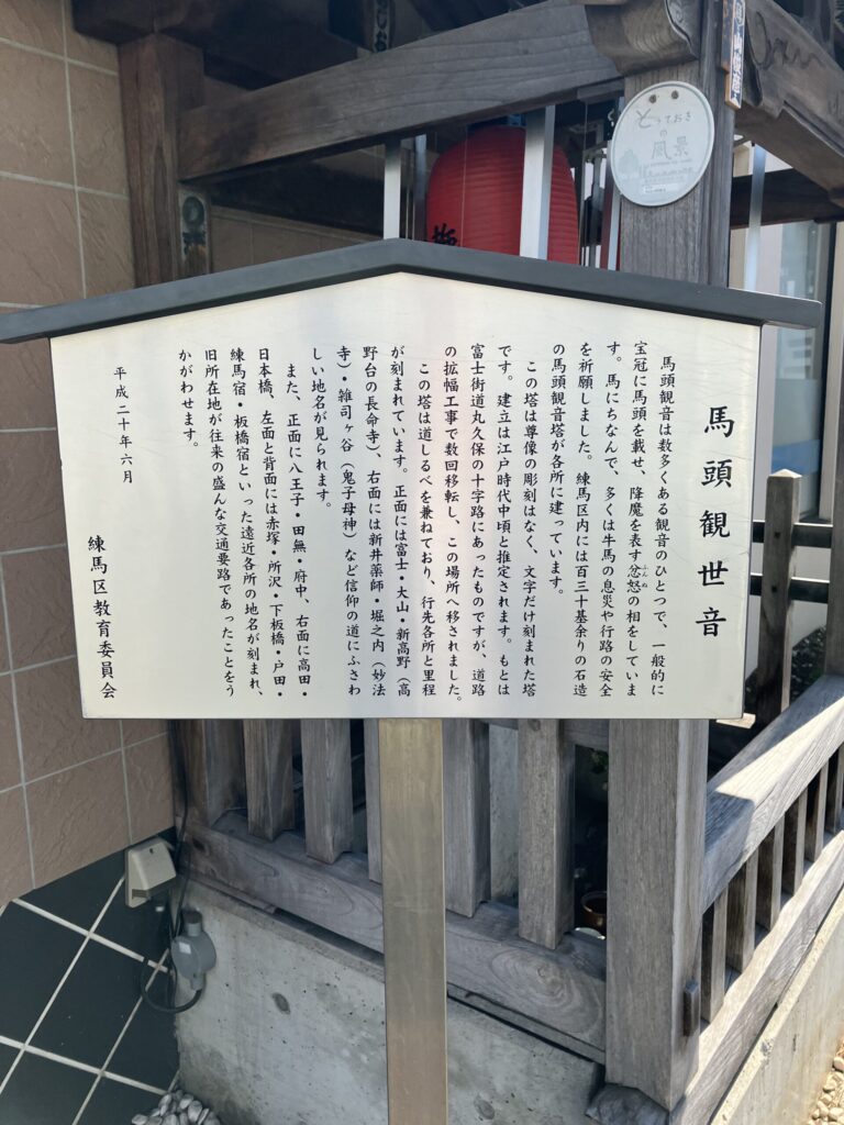 平和台駅前交差点の一角に馬頭観音を見つけました。この馬頭観音からも、このあたりが交通の要衝であったことを窺い知ることができます。