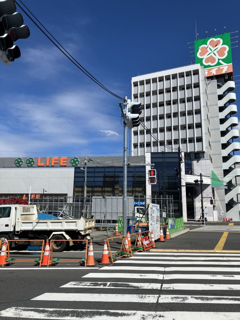 交差点にはライフがあり、通勤帰りの買い物も便利です。