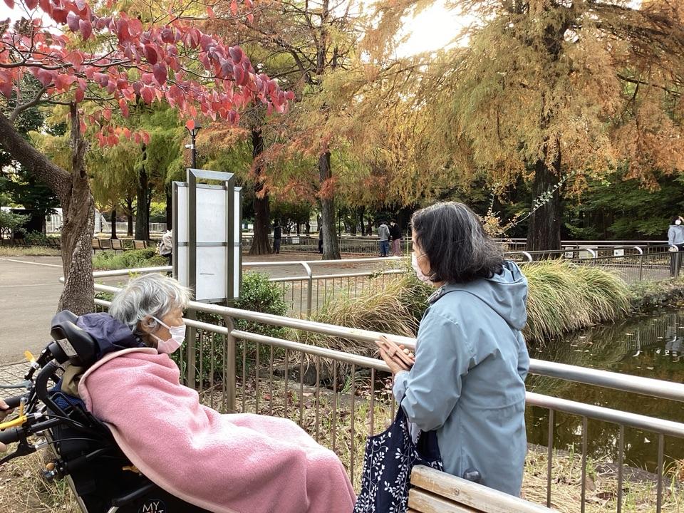 先日、ある利用者様と奥様、リハビリ部門の飯野主任と一緒に、近隣の公園へお散歩へ出掛けました🎵