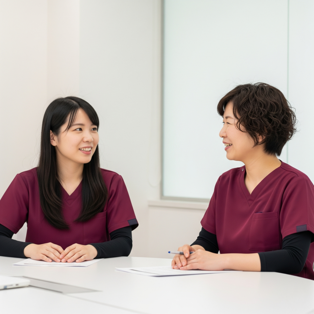 | 相談体制 | 判断に迷うことがあれば、経験豊富な管理者や先輩看護師にすぐに相談できる体制が整っています。疑問や不安をその場で解消し、適切な判断を下すためのサポートを受けられます。 |